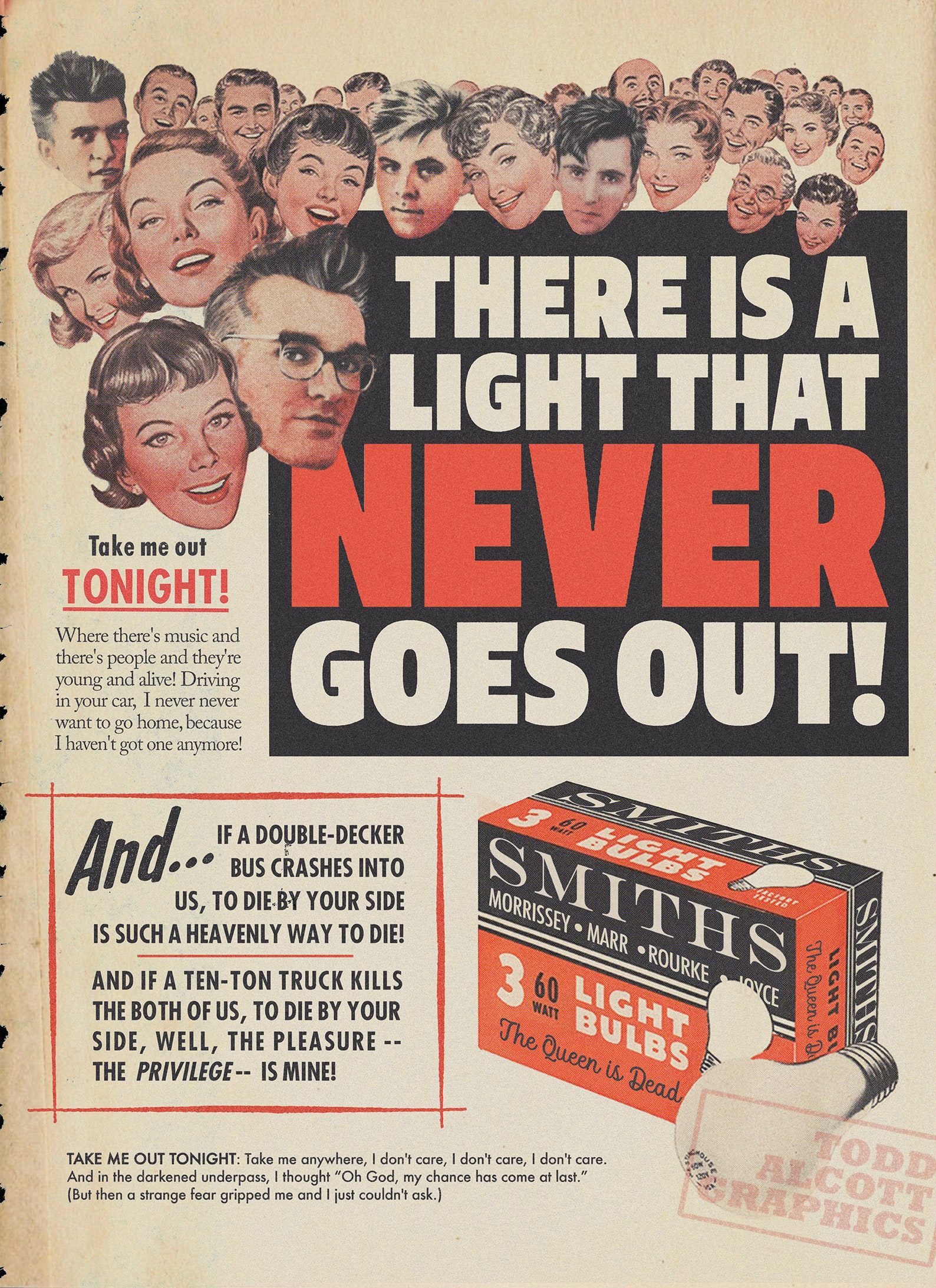 This morning, Open Culture pointed me to the work of screenwriter and graphic artist Todd Alcott, who—when he’s not writing movies—translates his favorite songs into vintage book covers, mostly of the pulp fiction and mid-century modern variety, but with some other genres (nature guides, self-help books, etc.) thrown in for good measure. Alcott makes the “cultural mashups” digitally, and describes them as “conversation between the songwriter, the original designer, himself and the viewer.” If you’ve ever wanted to read a David Bowie song as a novel, well . . . you’ll want to even more now. Below you’ll find a selection of my favorites; you can buy prints of all of these and lots more in Alcott’s Etsy store.
